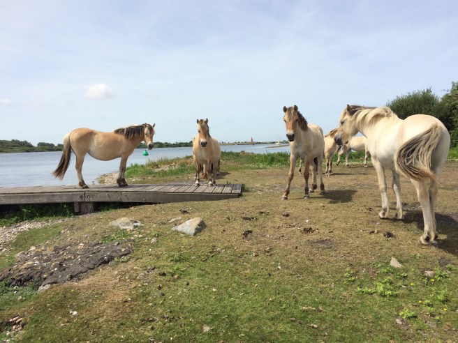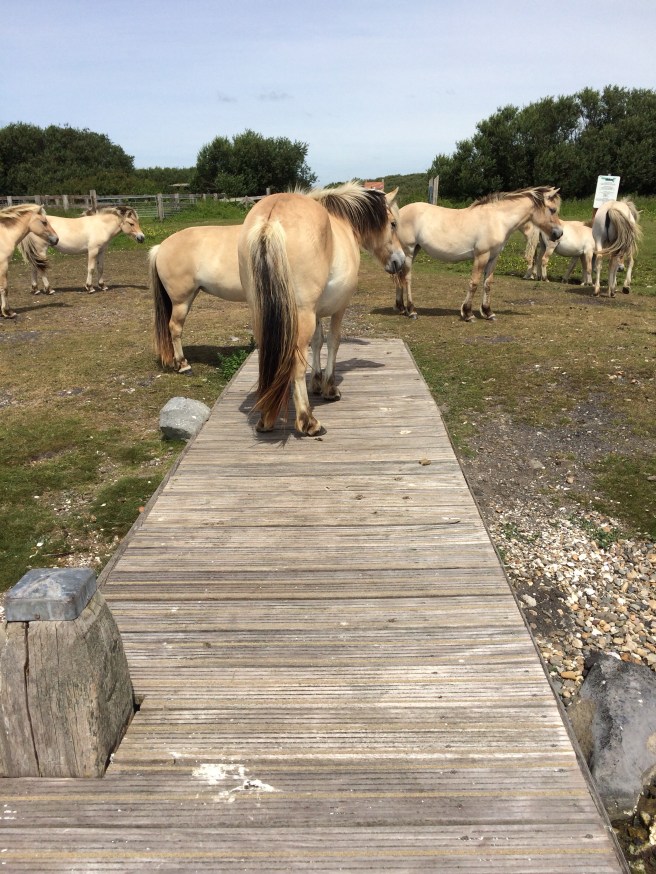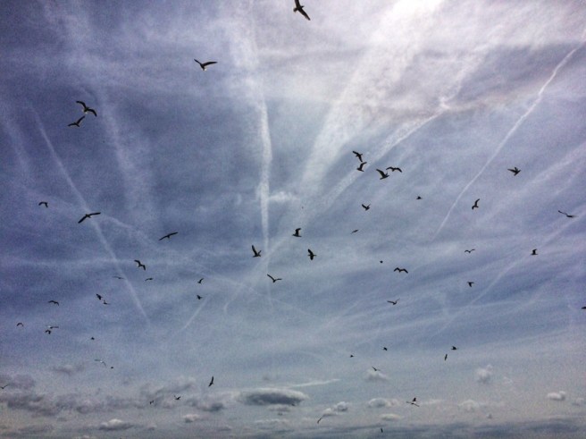 And as we walked and one group settled, another group started. Luckily I’d brought the boat hook as an emergency horse deterrent, so by holding it vertically like a tour guide’s umbrella the swooping seagulls were kept at a bit of a distance from our heads!
