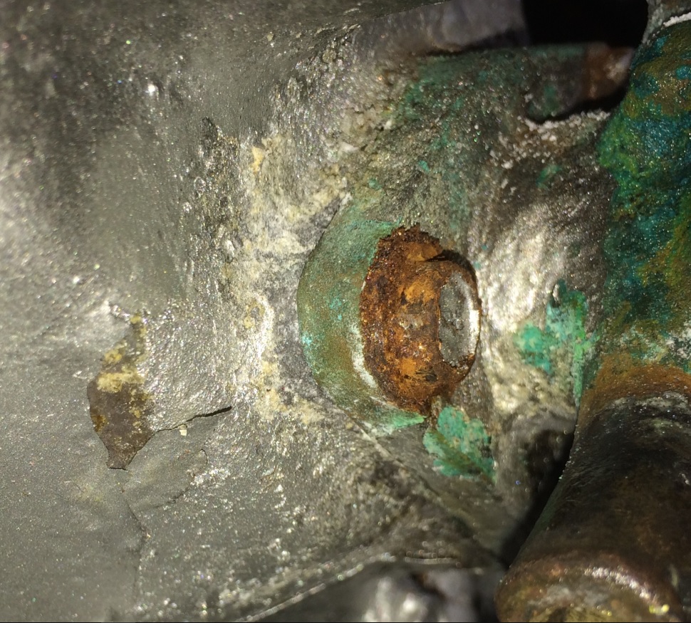 Getting my camera in there reveals what a state it’s in but as the other two were all ok I’d assumed that one was too! With a mixture of steel, bronze, aluminium and warm salt water all pressed closely together it’s hardly surprising I suppose!