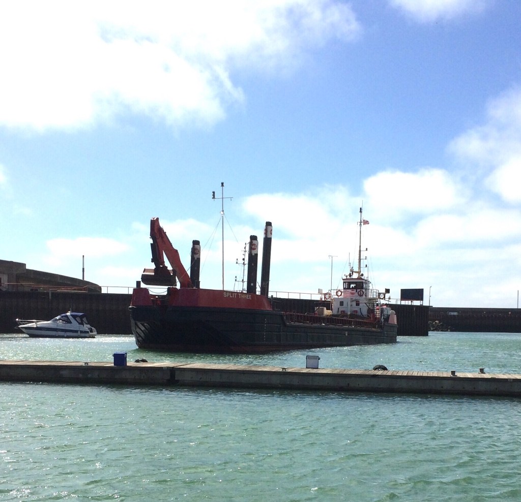 Strong wind in Brighton today plus the entrance made tricky by the presence of the dredger so spending the time watching a motor boat that ignored the dredgers signals and is now aground!