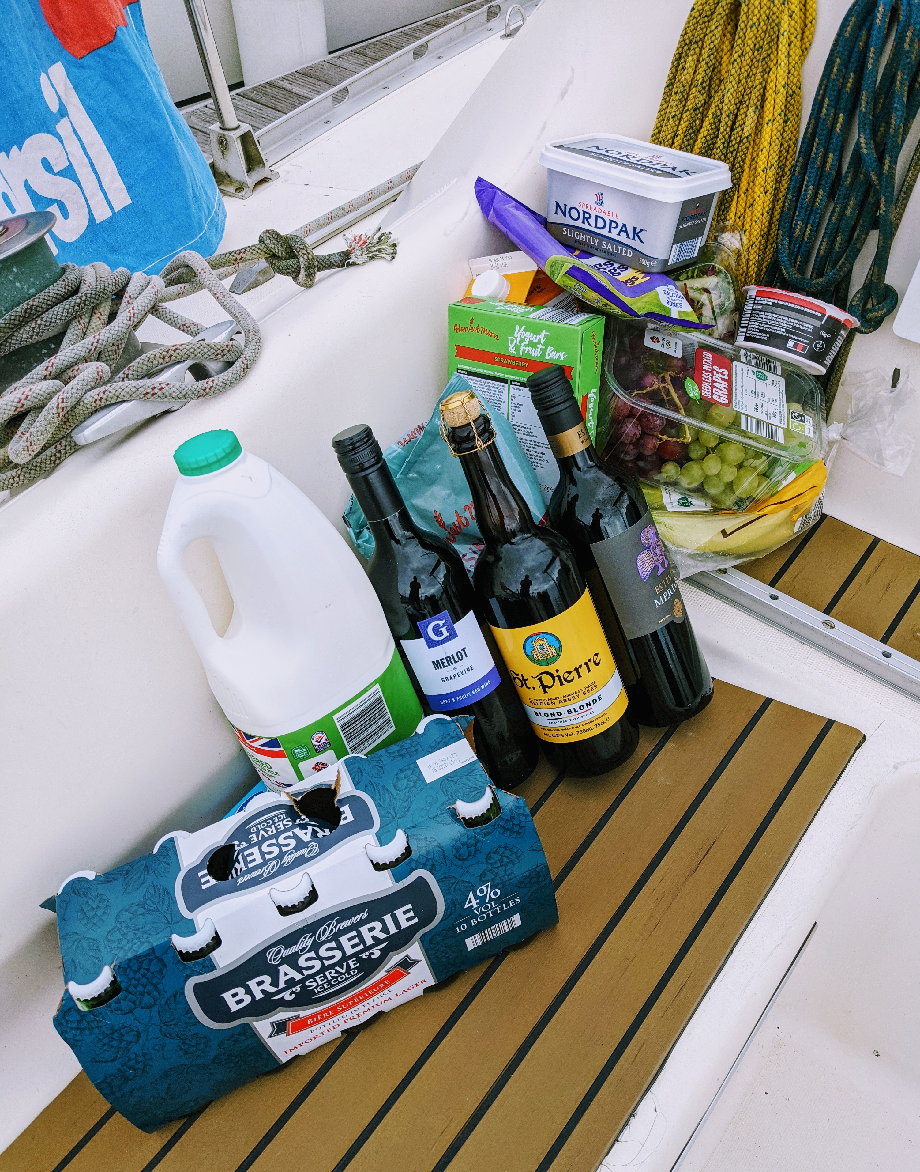 I’ve just finished lying awkwardly on the pontoon with a mirror in one hand and a breadknife lashed to a stick in the other, to clear the prop of a wedding-bouquet-sized clump of seaweed – so all good for Yarmouth tomorrow !!
